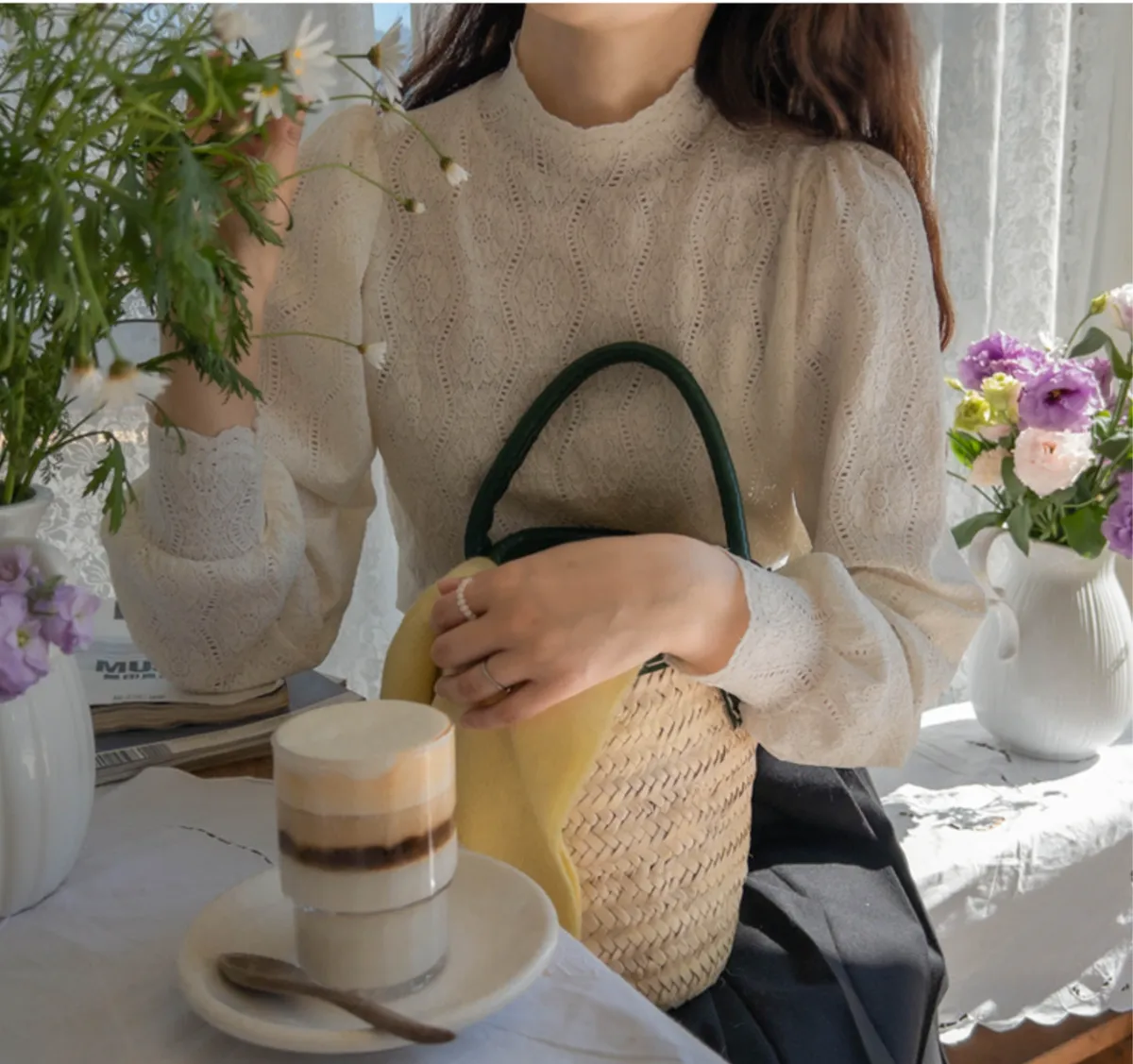 // Best Review 🖤 🖤 //11.28~11.31 冬季熱賣款限時折扣7%滿2000超取免運coupon輸入 “ WINTER11 ” 立折50元這件也太美了啦!這個禮拜的新款,也是熱賣no.1 也是百搭的打底單品,單穿也好看 蕾絲有彈性喲,很舒服的料子,不易皺 歐膩是穿白色,但其實不是純白喲 蕾絲很漂亮 一定要包色才行 肩寬32 胸寬46 衣長58cm made in korea