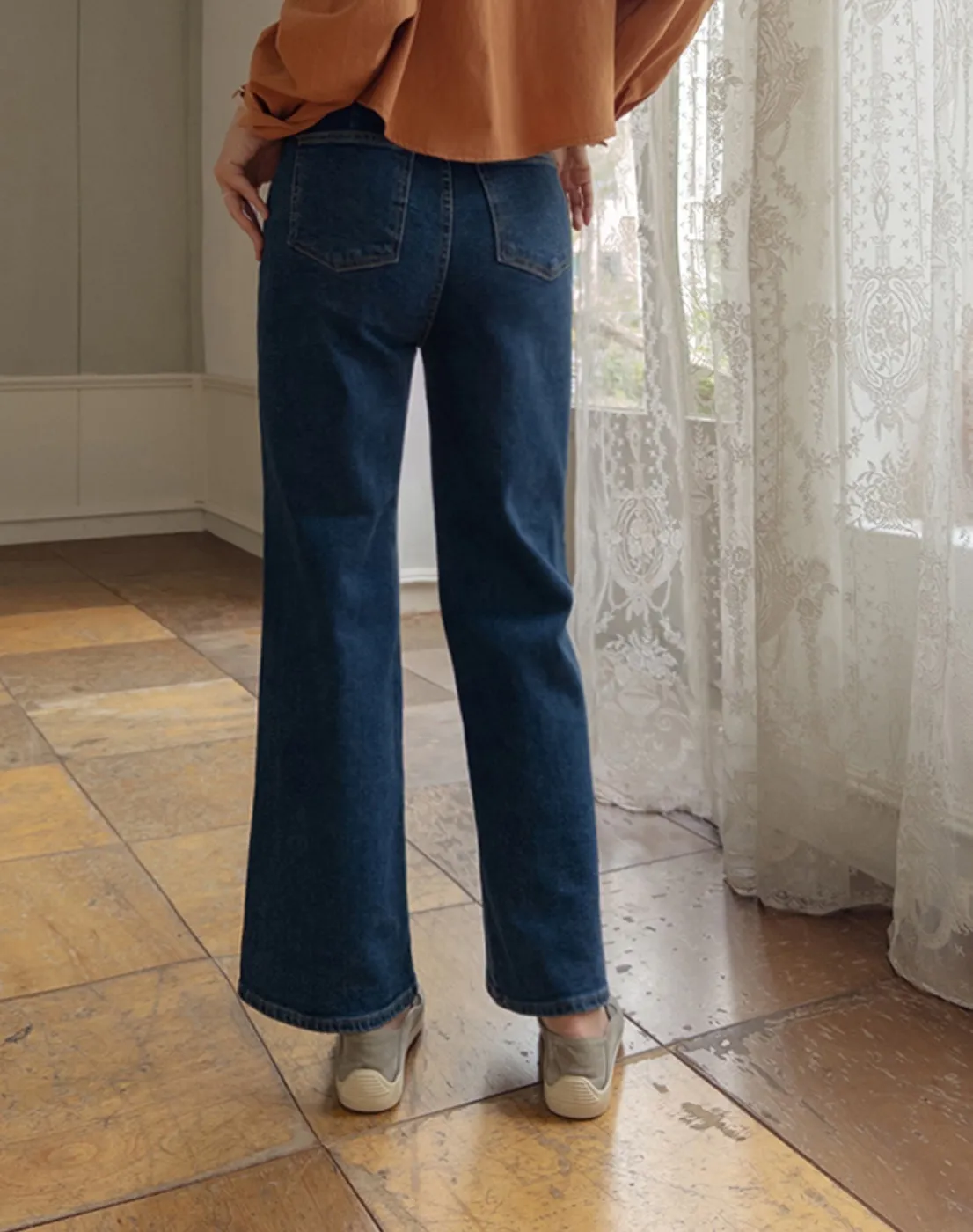 闆娘大推的版型,也有出深藍款啊 完全不會掉色的牛仔褲面料 側線條加上口袋設計,真的很顯瘦 跟這個月#OC407是同一版型 但是深藍色絕對更加顯瘦 版型是舒服的直筒寬褲,蠻舒服寬鬆的唷 全鬆緊腰圍 版型正常,介於兩個尺寸中間要拿小一號 S腰寬32~37 臀寬46 全長95cm M腰寬34~39 臀寬49 全長96cm L腰寬36~41 臀寬52 全長97cm made in korea