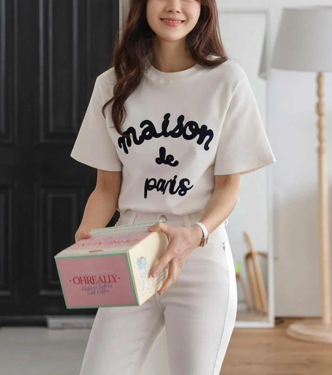 OC503 正韓 字母印花舒服厚棉短tee F 白色現貨