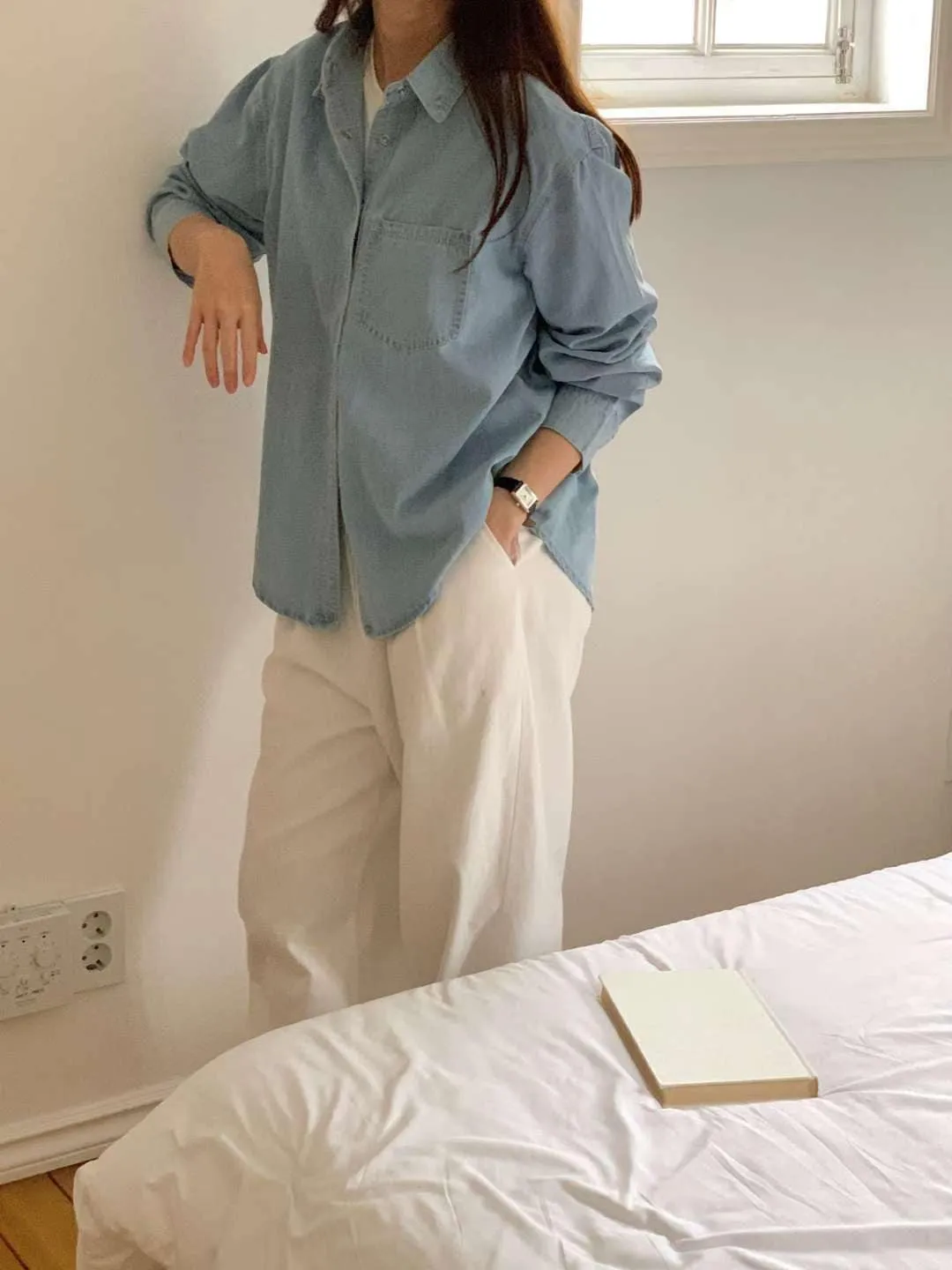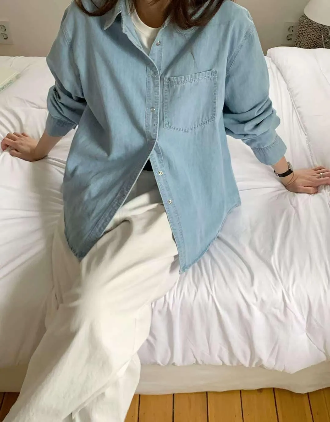 這家是新的檔口,闆娘又去實際看了質料 我覺得超棒的,價格也很平實 推薦幾款給大家 秋冬必備的牛仔襯衫,跟針織外套疊穿真的好看 雖然麻豆是穿淺藍 但是一定要入手深藍款的才行 這件是比較輕薄款的 一年四季都可以穿 也很適合台灣天氣 無彈性,不限尺寸 衣長約61cm Made in Korea