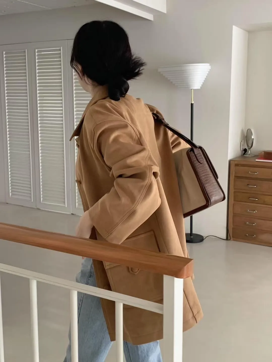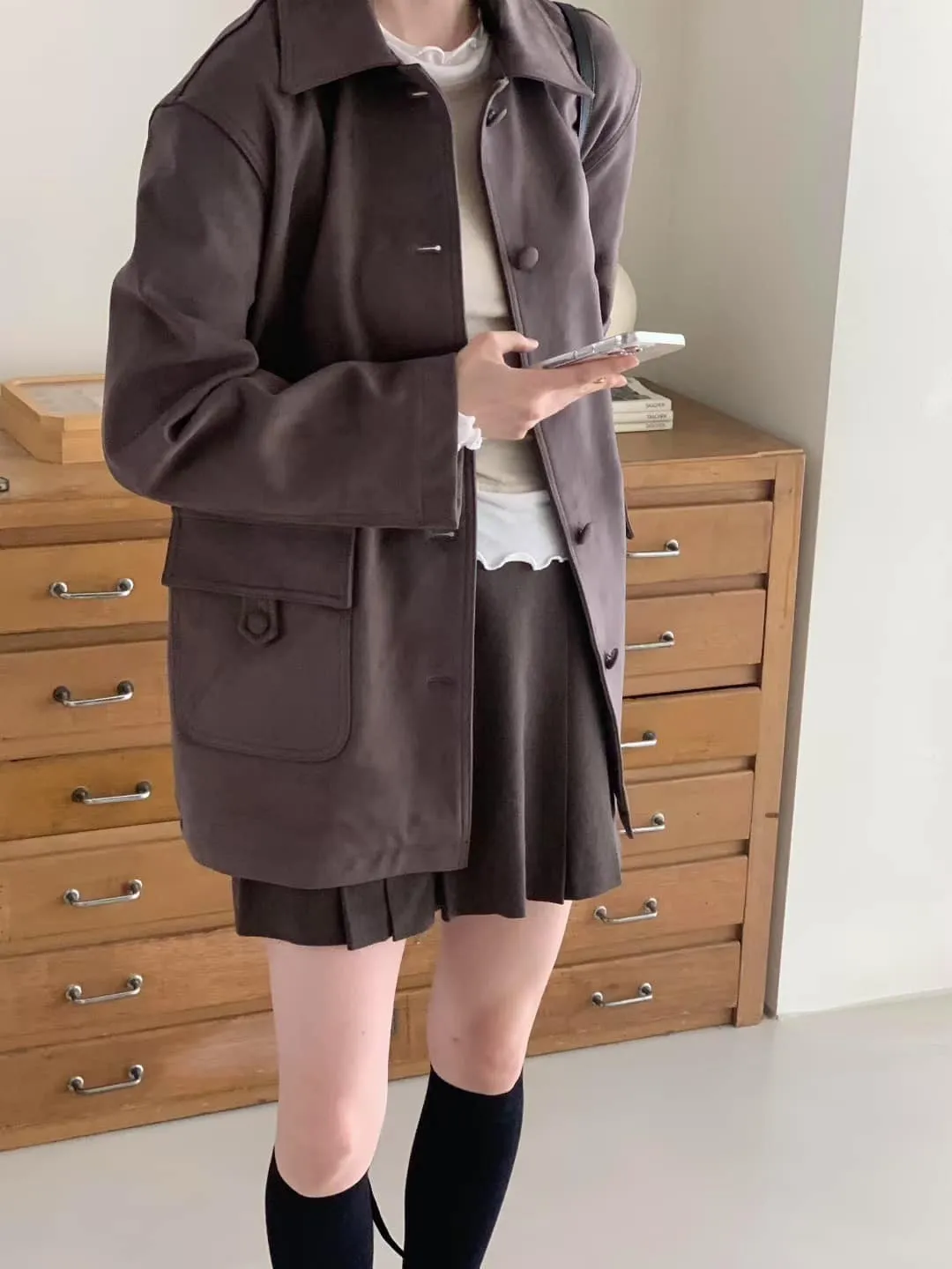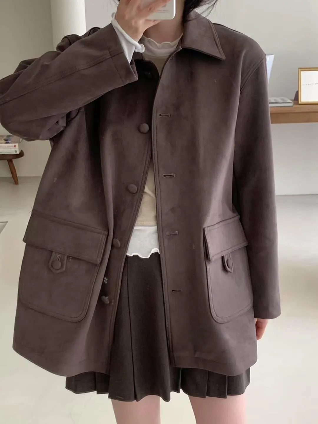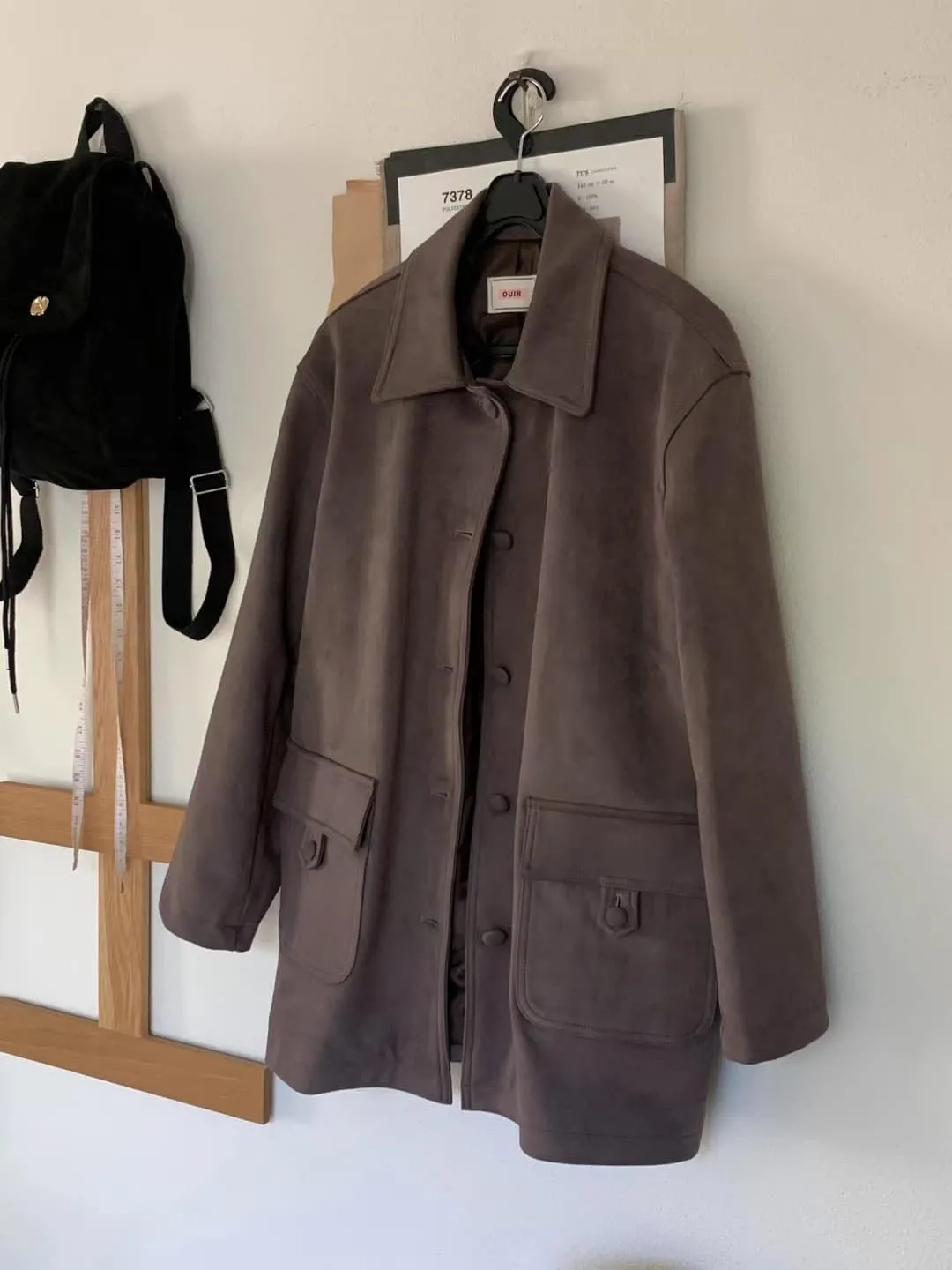 麂皮外套,今年秋冬必須來一件 濃厚的復古休閒感 跟牛仔,蕾絲單品真的百搭 厚度適中,很理想的日常外套 這件是合肩線的、穿起來修身又俐落 可以遮到屁股的衣長 更加實穿 有內裡 這件闆娘覺得價格很不錯 焦糖棕色真的好好看 推薦 Made in Korea